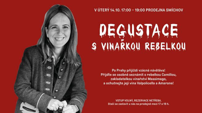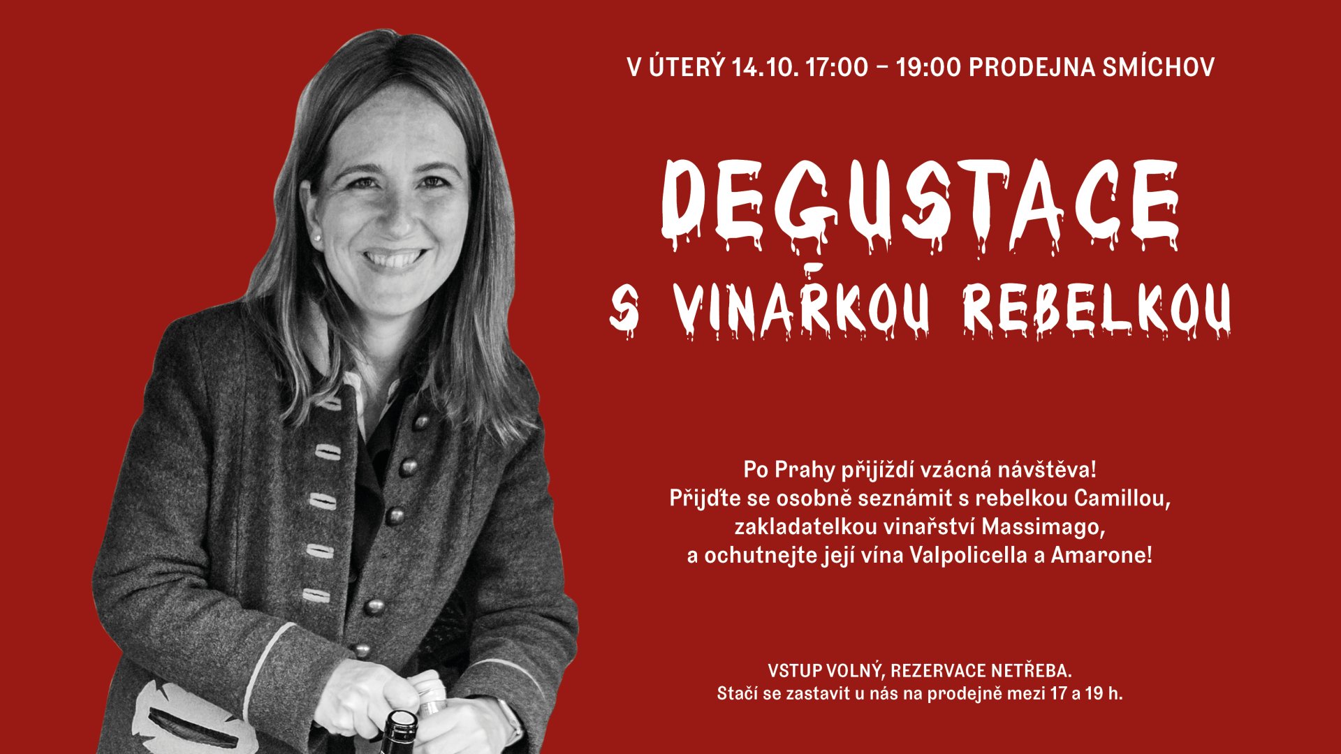 How did a young rebel who had nothing to do with wine become a renowned winemaker whose Amarone is now one of the best in the region? What lies behind a single bottle, and how do her distinctive organic wines actually taste? Come and ask Camilla herself and have a glass with her. No reservation is necessary, just stop by our place in Smíchov between 5 and 7 p.m.